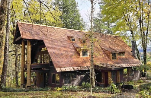 Architect-designed 3,600 sq. ft. lodge on 7.6 private acres with sweeping mountain views, 3 miles from Sugarbush. Features chef’s kitchen, stone fireplace, wraparound deck with firepit, spa-like primary suite with steam room, and artisan details throughout. Perfect for gatherings — multiple living spaces, stocked kitchen, and year-round adventure. Guests love the peaceful setting, breathtaking views, and unforgettable design. Upper Pines Lodge is a warm and welcoming mountain retreat, thoughtfully designed to offer both elegance and comfort. Nestled among towering pines on nearly eight private acres, the home’s expansive windows and wraparound deck frame sweeping views of the Green Mountains — perfect for morning coffee or stargazing at night. Inside, the open-concept great room is the heart of the home, with soaring ceilings, a beautiful stone fireplace, and cozy seating that invites you to linger. The chef’s kitchen features a Wolf range, artisan-crafted cabinetry, and Vermont marble counters — equally suited to a simple breakfast or a special dinner. With room for up to 8 guests, the lodge offers a variety of inviting sleeping spaces. The primary suite includes a king bed, private spa-style bath, and a steam room for post-adventure relaxation. Two additional bedrooms, each with a queen bed, provide quiet comfort. A charming bunk room with two sets of twin bunks is ideal for kids or the young-at-heart. Bathrooms are finished with rich stonework, hand-blown glass sinks, and high-end fixtures, creating a spa-like experience. Heated floors throughout the home keep things toasty in winter, while the wraparound deck, outdoor firepit, and surrounding trails make summer equally memorable. Whether you spend your days skiing at nearby Sugarbush, hiking local trails, or simply enjoying the peace of the property, Upper Pines Lodge offers a serene and luxurious base to return to — a true escape into Vermont’s beauty. Enter through the front door to the right of the garage. The code for the eLock will be emailed to you the day before or morning of check-in, or ASAP for a same-day booking. If you need help during your stay or have any questions or concerns, contact your local host, Kate Alexander. You will receive contact info after booking.