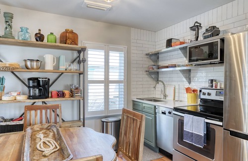We named it the RATHERSHACK because you'd rather be here than anyplace else in the world. We are 'second row' from the beach - which means a 45 second walk for you slow pokes, or 30 seconds for the average beach bum. The cottage' we are advertising and scheduling here is the 2 BR 1 bath, the other listing is #3478178. Lots of charm and beach feel decor at no extra charge as this unit has all new beach-style furnishings, flooring, paint, new roof, and new air conditioning. This unit has an open floor plan for casual gatherings after your day at the beach. This unit has fully stocked kitchen utensils etc with microwave and dishwasher. The 2 BR features a large master with queen bed, shabby chic charm. The second bed has a full bed with new pillow top thick mattresses, and plenty of changing room. Super clean no allergens pet dander etc as we do not allow pets. This Unit has cable TV and, WIFI . Off Street parking for 1 vehicles included. . Gas grill on site available for you grill masters out there. Riding bikes is one of our favorite things to do around around here, and look at all the sugar shacks, moderate homes, and homemade fishing piers plopped right next to the occasional McMansion. Architectural variety on every block. Folly Beach makes no judgment on who you are or where you come from...just bring your flip flops and come as you are.