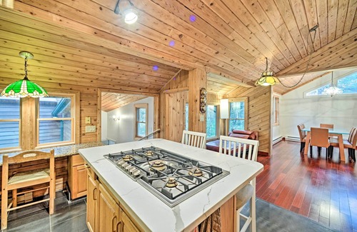 Catskill Mountain adventures and unique local charms await your stay at this Elka Park vacation rental. Hosting 3 bedrooms, a sleeping loft, 2 baths, and cozy essentials, this upper unit in a cottage-style property lets you warm up by the wood-burning fireplace after days spent shredding resort slopes, hiking mountain peaks, shopping, dining, and more. Kick back in front of the large flat-screen TV and pop in a DVD for family movie night or whip up gourmet feasts with the grill and full kitchen.