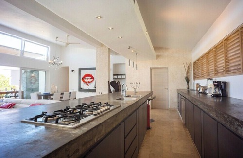CASA CORAZÓN built over 2 floors, this villa has been decorated with classic modern touches, combining simplicity and elegance. The master bedroom on the main level has a king-size bed, a private bathroom and direct access to the central terrace where the swimming pool is located. The other three bedrooms all with large double beds are fully equipped and all have a private bathroom. Two large exotic wood patios, as well as a third smooth concrete patio on the lower level are surrounded by incredible tropical gardens, and complete the luxurious interior
