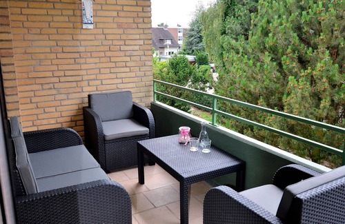 Exclusive 80m² maisonette apartment over 2 floors in a quiet, beach near location of Grömitz for up to 5 people. 3 bedrooms, 2 bathrooms, large balcony, kitchen, bath, parking space, bicycles, carts, highchair, cot, WiFi.
