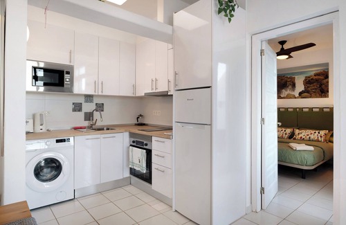 Boasting a beautiful view of the Atlantic, the holiday apartment Los Molinos 4306 is located in Costa Teguise. The 40 m² property consists of a living room with 2 sofa beds for one person each, a fully-equipped kitchen, 1 bedroom and 1 bathroom and can therefore accommodate 2 people. Additional amenities include high-speed Wi-Fi (suitable for video calls) with a dedicated workspace for home office, a TV, a fan, a washing machine as well as beach/pool towels. This accommodation does not offer: air conditioning. This vacation rental offers a private outdoor space featuring a pool, garden, balcony, and outdoor shower. Perfect for a relaxing getaway.