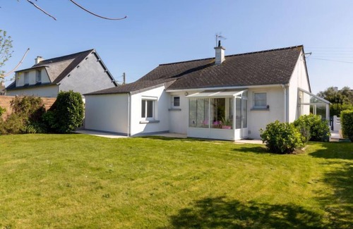Single-family house "Karome". In the resort 400 m from the centre of Saint Coulomb, in the residential district, excellent location: right in the centre but still quiet, traffic calmed area, 1.5 km from the sea, 2.3 km from the beach. Private: well-kept garden 600 m2 (fenced) with lawn and flowers. Terrace, garden furniture, barbecue. In the house: storage room for bicycles, drying room. Parking on the premises. Shop 130 m, grocery 650 m, restaurant 700 m, bar 500 m, bakery 500 m, bus stop "La Tannée" 1.4 km, railway station "Gare TGV de St Malo" 9.3 km, ferry "Gare maritime du Naye" 11 km, sandy beach "Du Guesclin" 2.3 km, thermal baths "Thermes marins de St Malo" 8.4 km. Sports harbour 11 km, riding stable 1.6 km. Nearby attractions: Grand aquarium de St Malo 12 km, Dinan 36 km, Dinard 19 km, Cancale 5.5 km, Le Mont St Michel 47 km, Dol de Bretagne 21 km. The keys‘ handover takes place by the agency Interhome in Cancale, 4 km.