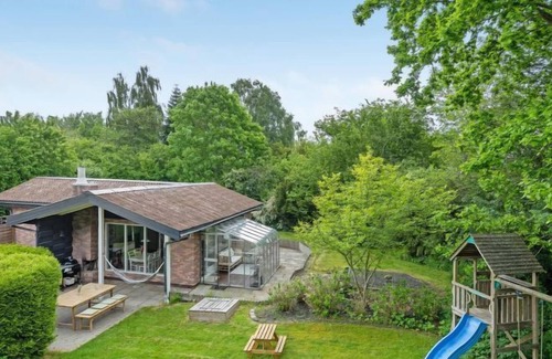 "Lillemor" - 2.4km to the inlet in Sealand", 3-room house 88 m2. Object suitable for 6 adults + 2 children. Living room with open-hearth fireplace and TV. 1 room with 1 double bed. Studio 1 room with with 2 x 2 bunk beds, 1 double bed. Kitchen (oven, dishwasher, 4 induction hot plates, microwave, freezer). Shower/WC. Conservatory. Facilities: children's high chair, baby cot (extra). Internet (WiFi). Please note: non-smokers only.
