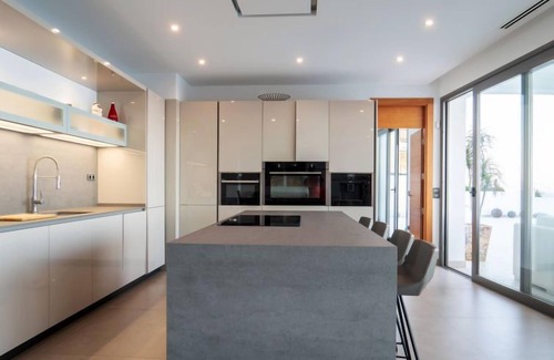 "Luz", 8-room villa 651 m2 on 3 levels. Object suitable for 10 adults. Spacious and bright, practical and tasteful furnishings: lounge with digital TV and flat screen. Exit to the terrace, to the swimming pool. Living/dining room with air conditioning and forced-air heating. Exit to the terrace, to the swimming pool. Open kitchen (oven, dishwasher, 3 induction hot plates, toaster, kettle, microwave, electric coffee machine, Capsules for coffee machine (Dolce Gusto) extra, cooking island). Exit to the terrace, to the swimming pool. On the lower ground floor: lounge with digital TV, flat screen and Home cinema. 1 room with 1 double bed (180 cm, length 200 cm), shower/WC (private) digital TV. Upper floor: 1 room with 1 french bed (200 cm, length 200 cm), shower/WC (private) air conditioning and forced-air heating. 1 room with 1 french bed (200 cm, length 200 cm), shower/WC (private) air conditioning and forced-air heating. 1 room with 1 french bed (180 cm, length 200 cm), shower/WC (private) air conditioning and forced-air heating. 1 room with 1 french bed (180 cm, length 200 cm), shower/WC (private) air conditioning and forced-air heating. Living/dining room with dining table and kitchen corner. Lounge with digital TV. 3 terraces. Terrace furniture, deck chairs (6). Panoramic view of the sea. Facilities: washing machine, dryer, iron, children's high chair, baby cot for up to 2 year olds, hair dryer. Internet (WiFi, free). Please note: non-smoking house. Maximum 1 pet/ dog allowed. Smoke alarm, fire extinguisher. VUT/MA/44772 ESFCTU0000290400001268930000000000000000VUT/MA/447725