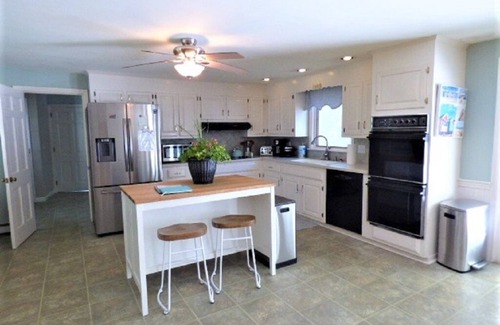 Not only does the house have 7 bedrooms, sleeps up to15 guests and 3.5 baths, it also has a gorgeous 20' x 50' HEATED pool. There is a brand new deck that surrounds the heated pool along with a screened in gazebo for hanging out. The enormous side yard is the perfect place to raise a tent and host that special occasion or just enjoy the lush lawn to play volleyball, throw a frisbee, play a game of touch football or you name it.