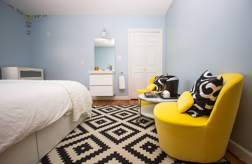 A bright and modern vacation rental in downtown Greenville! Perfect for business travel, family gatherings, girl's weekends, weddings, retreats and those who want to live like a local and explore Greenville on two feet or two wheels. Grab one of our rental bikes and explore 18+ miles of the Swamp Rabbit Trail paved rails to trails greenway up to Travelers Rest, SC. Close to everything in the heart of downtown Greenville this cozy inn has a funky European decor with a community kitchen, outdoor decks with a gas grill and rocking chair front porch. Views of downtown Greenville and the mountains. Close to Flour Field, Falls Park, the Kroc Center, the Peace Center, bars, restaurants, shops, wedding venues and Greenville Hospital System medical campus, Pendleton Arts District. The Swamp Rabbit Inn offers 2 guest rooms on the main floor with handicap accessible bathroom, a sink in each room, 4 guest rooms on the second floor all with queen beds, 2 of which are deluxe rooms that have a private bathroom and a sleeper sofa. Main floor includes large, modern, well appointed kitchen, dining room and living room. Each guest room has a sink, TV and Kuerig beverage maker. Great downtown location to enjoy everything Greenville has to offer. Private parking lot with seven spaces. Free wifi. Great meeting space with Apple TV and large screen TV and white boards for presentations. Yoga studios, cross fit gyms, tennis, indoor pool and paved fitness trail are right out our front door. Bike rental available on site. #bikeinnbikeout