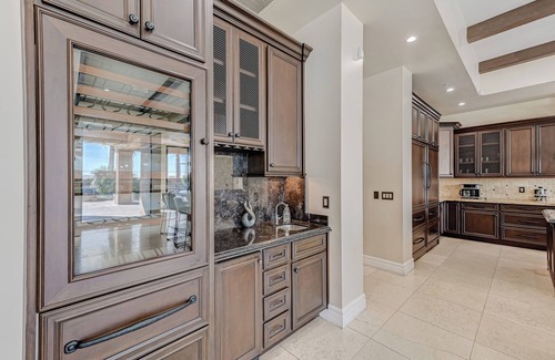 The private movie theater, pool table, and resort-style swimming pool and spa offer endless entertainment options. Lounge by the pool, soak in the hot tub, or take in the stunning views of the Las Vegas Strip from the comfort of your own backyard.