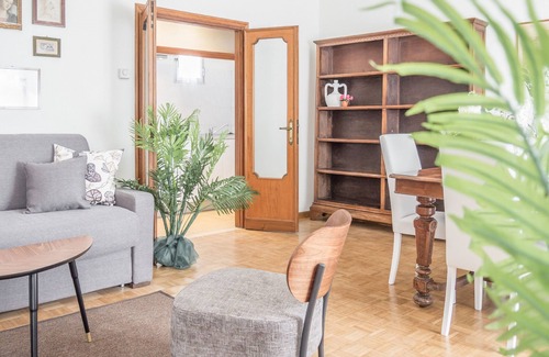 Apartment on the fourth floor overlooking the courtyard and Calle adjacent to the building; entrance; living room with dining room and sofa; individual kitchen equipped with dishwasher and microwave; bathroom with bathtub and bedroom with two queen-size beds.