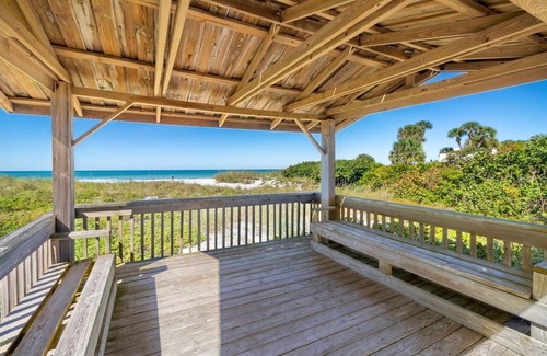 Put your toes in the sand and enjoy the good life! This charming villa condo is located on the quiet beachfront community of Venice Villas on beautiful Golden Beach on the Island of Venice. Enjoy your private beach access, watch the glorious sunsets from the beach side gazebos or lounge in the large community pool. Property includes on site laundry facilities, grilling area, private parking spaces and fantastic fishing from the private beach. The unit features a full kitchen, separate bedroom with a queen size bed, pullout full size couch, reclining sofa, bathroom with walk-in shower, living room and air-conditioned Florida room. This 505 sq. ft. apartment is exceptionally clean, nicely decorated, large screen TV with basic cable, Wi-Fi service and Roku TV. Walk, bike or drive to the charming historic Downtown Venice with great shopping, restaurants and a vibrant theater and arts scene. Sharky’s fishing pier takes you out about a quarter mile off the beach or you can catch the view from the 2 restaurants overlooking the Gulf.