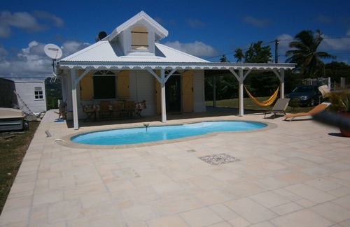 Very beautiful wooden Creole Villa, on 900 m² of land, with a private swimming pool. It has: two air-conditioned bedrooms with double beds 180 x 200, a sofa bed in the living room, an equipped American kitchen, a bathroom with Italian shower, an independent WC all on the ground floor and a mezzanine with possibility of sleeping. A garden shed. A terrace all around the house allows a pleasant outdoor life. The most beautiful white sand beaches are nearby. All water sports will be allowed, hikes are also possible. And this is only the starting point for visits to the island, with its volcano: the Pelée, its symbolic rock: the Diamond as well as the houses of our illustrious writers: Aimé CESAIRE and Edouard Glissant. You can click on the following link to get an idea of the beauty of my island: https: // www. flickr. com / photos / aorsan / sets / 72157633182567140 /