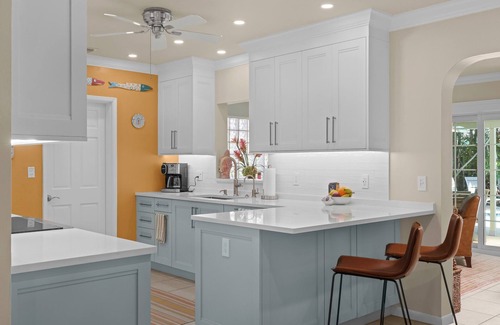 Nestled in a serene neighborhood, the "Victoria Park Tropical Gem" offers an exquisite private residence that promises an idyllic getaway in the heart of Fort Lauderdale. This single-level home spans 1,500 square feet and is perfectly designed to accommodate up to four guests, making it an ideal retreat for a couple, families or a small group of friends. The professionally designed residence boasts two elegantly furnished bedrooms, each outfitted with sumptuous bedding; the primary bedroom features a king-sized bed, while the second bedroom offers a queen-sized bed with en-suite bath. Additionally, the home provides flexible sleeping arrangements with a pullout sofa and another sofa that doubles as a comfortable sleeper. The linen closet is well stocked with supplies that you may need during your stay. Pamper yourself with luxury linens and Turkish towels.