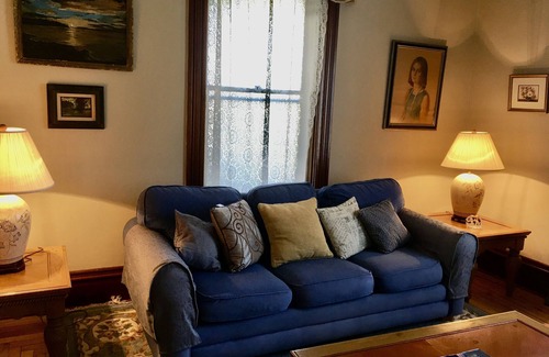 Original Hardwood floors, main floor with backyard quiet historic downtown walking distance in historic residential area with local park. Kitchen dishwasher, microwave stove fridge with washer and dryer. Two bedrooms one with double bed and other queen bed with private bathroom.