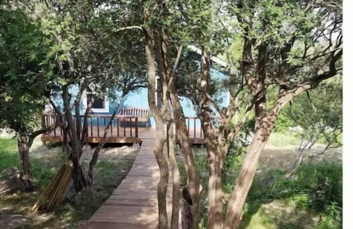 Unique guest house that sits in a forest of persimmon and oak trees with a beautiful view of Georgetown and Southwestern university. The house overlooks a green lush meadow with two ponds. We have flower gardens, paths that are all private with wildlife.