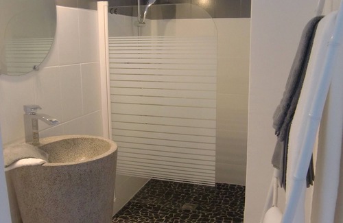 Located a few minutes from St Pierre, in the south of Reunion Island, and enjoying an exceptional sea and mountain view, in a quiet area, the Villa Ambralini is located at the gateway to the Cirque de Cilaos, the Volcano and the Sud Sauvage. direct access to many excursions. It is also near the lagoon of Saint Pierre and the beaches of the west. Pascale and Pascal are pleased to welcome you and offer a very spacious room (for two adults and a child), standing, with private bathroom, king size bed (160x200) and high quality bedding. It opens onto a terrace and a large lounge reserved exclusively for our guests. Flat screen, refrigerator, kettle, books, games, wifi access are at your disposal as well as a tray of courtesy. The villa has a swimming pool with loungers, hammock and relaxing lounge in an exotic garden. Pascale also offers relaxation massage for pure relaxation. If you wish to share the family table, our dinner table you many surprises through a menu combining the products of Reunion refinement and originality of user-friendly dishes.