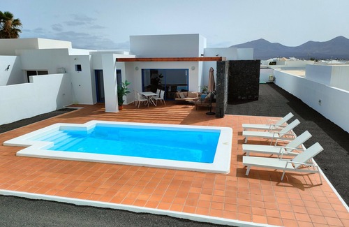 Are you looking for an ideal villa for your family, well-located, with a spacious outdoor area and heated private pool? Villalia Aroa is your place!Beautiful 3-bedroom villa with outdoor area, heated private pool, shaded area, private access and views of magical places such as the Los Ajaches Natural Monument and Montana Roja.It has 3 very cozy bedrooms. Two double bedrooms with a 1.50m x 1.90m bed and en-suite bathroom and a third bedroom with two single beds and bathroom. The accommodation has 2 modern bathrooms, both with shower tray (recently renovated). Spacious living-dining room with direct access to the outdoor area and a fully equipped kitchen (with dishwasher) with an external laundry area and access to the porch. This layout allows you to enjoy a pleasant outdoor meal after a refreshing swim in the pool or a restorative nap in the sun.Equipped with services that we know are important for your comfort, this villa is the ideal place for your family, couple or group of friends holidays. WiFi service, Smart TV, 42-inch HD with Netflix, Amazon Prime Video, Apple TV, HBO possibility (you need to be a user to access applications), satellite television, air conditioning, comfortable outdoor furniture (sunbeds, table, chairs, pergola), barbecue. This accommodation has a private parking space and a particular and independent entrance.Located in Playa Blanca, just 5 minutes by car from Flamingo beach and very close to well-known corners of Lanzarote such as Papagayo Beaches, Los Hervideros and Timanfaya National Park.Want more information? We will be happy to help you choose the best home for your holidays.