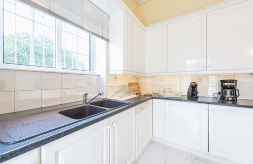 - A fully equipped kitchen with refrigerator, stove, microwave oven, dishwasher, coffeemaker and cookware.