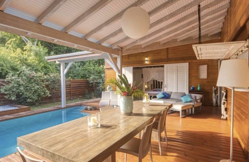 The villa Bouddha 1 is resolutely Creole with Balinese inspirations. Intimate, the living and sleeping areas are turned towards the beautiful covered and ventilated terrace and the pool. A perfectly equipped American kitchen with a large flat pass opening on the terrace, and a bar on the small audio visual living room. Two large air-conditioned bedrooms furnished with taste. Bed in 160 for one and Queen size for the other. They have both, their beautiful Italian shower room, with private toilets,