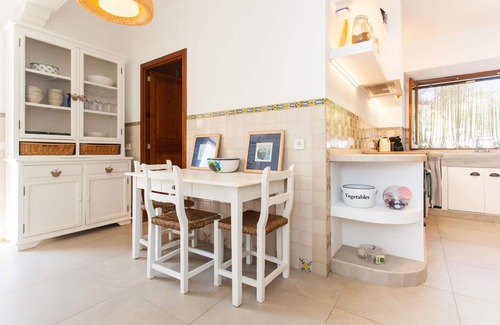 VILLA CABRERA allows you to discover the best of the landscape and style of Puerto Colonia de Sant Jordi, in the south of Mallorca with its exclusive views of the island of Cabrera. Located in Colonia de Sant Jordi, this property offers panoramic views of the Mediterranean and has a cozy design. The accommodation includes 6 bedrooms with a maximum capacity of 12 people, 5 bedrooms are located in the main house, and 1 bedroom in the guest annex. The terrace of the large living room of the villa offers sea views. In the garden area, its 11x4 pool is located, with its sun loungers, chillout, barbecue and shaded outdoor dining area at the top with the best views. The villa also has Wi-Fi connection, air conditioning in the guest annex and fans in the main house. The large living room opens onto the terrace and includes a large and comfortable armchair area with a casual atmosphere at one end and a dining area that seats 12 people on the other. It also has a fully equipped kitchen. In the main house you will find 1 bedroom bed 1'60, 1 bedroom with 1'80 breast, 1 bedroom with 2 beds of 1'35 each, 1 bedroom with 1 bunk bed and another bedroom located next to the kitchen with bunk bed and private bathroom. The main house has 2 full bathrooms with shower that share the other 4 bedrooms.In the guest annex, the bed is 2,00 and has a private bathroom, equipped kitchen and living room. The villa is facing the sea, just 2 minutes walk from the port and 10 minutes from the beach of Es Dolç.Supermarkets, restaurants, bakery and ice cream parlor are very close to the villa.See you soon.