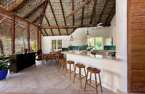 Espacios abiertos a la naturaleza, techos de paja de doble altura, decoración muy caribeña en bosques tropicales, espectacular y única ubicación frente al mar. La villa cuenta con 3 amplios y acogedores dormitorios independientes con acceso directo a la piscina y servicio de limpieza diario. También se ofrece el servicio de un chef, incluido en el precio de la villa.