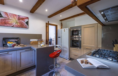 In contrast to the traditional air of the other rooms, the kitchen is a modern refuge with all the necessary appliances and gadgets for cooking or making toast and a cup of filtered coffee. At the end of some stairs leading from the kitchen, there is a practical laundry room.