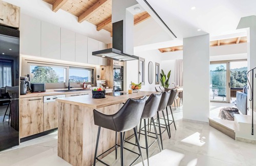 When your private pool space looks this good, you’ll never want to leave your sun-soaked lounger. Bask in the suns warmth whilst enjoying the sensational views that surround this little slice of paradise, before the azure waters call your name for a refreshing dip. Make full use of your infinity pool, whether its gazing out towards stretching sea views or having some fun in the sun one splash at a time. It’s all yours to enjoy! If you find yourself caught in the crossfire of poolside splashes, quickly retreat to the balcony for an ideal spot for a little alone time with just you, your favourite drink, and a gripping book to keep you company. If you’re a fan of alfresco dining, there’s plenty of inviting spots to enjoy Grecian goodies. Kick back on the poolside deck chairs for morning pastries, sip your sunrise coffee under the covered terrace or spend long evenings cooking up a feast on the BBQ, enjoying every bite of grill-side goodness. Mmm… it all sounds delicious.