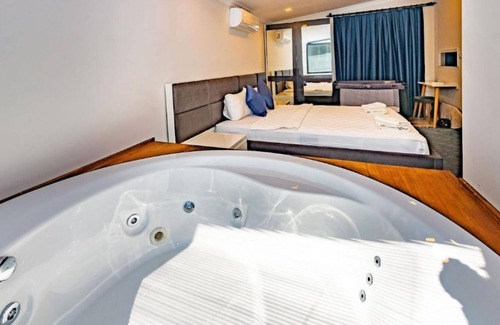 Our villa with 2 bedrooms and 2 bathrooms, which has a private pool, a large and beautiful garden and air conditioning in each room, (1st Room – 1 Double Bed + Jacuzzi + Air Conditioning + Balcony and Parent Bathroom, 2. Room – 2 Single Beds + Air Conditioning) is ideal for our guests (4 Adults) who want to spend their holiday in pleasure and peace. (Maximum 5 people / 4 people can sleep on a sofa bed or extra bed.)