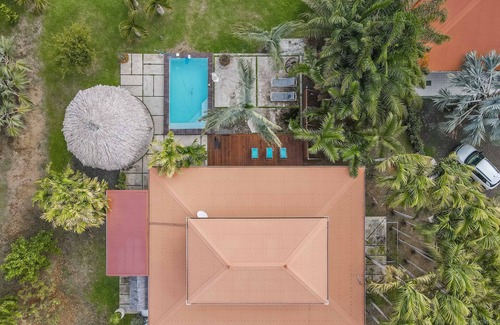 → Private pool surrounded by a large enclosed garden, ideal for cooling off under the tropical sun