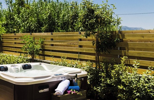 Outdoors the villa has its own fenced private area covered with grass and flowers, a heated swimming pool with hydro massage jet and sun beds. The pool also contains a pool alarm system for child safety. Next to the pool there is also a hot tube for 3 people! In addition there is an outdoor sitting area and a charcoal barbecue.