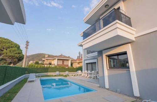 Located in the Çamdibi neighborhood of Marmaris, this magnificent villa offers families an unforgettable stay with its private pool and garden. With its lush garden and five rooms, it offers an environment where everyone can relax comfortably. The holiday you will spend in this villa, which is among the natural beauties of Marmaris, will be peaceful and full of pleasant moments.