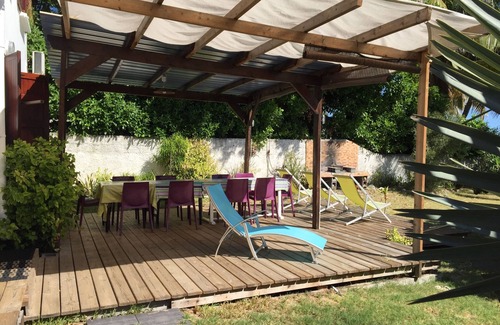Villa Hibiscus 'feet in water' is located along the Boucan Canot beach protected by a net. It is 3 kms from the center of Saint-Gilles-les-Bains. Facing a tropical garden overlooking the sea, it is composed of 2 verandas, living room, 4 air-conditioned rooms including 2 doubles and 2 with 2 single beds, a full bathroom, a dressing room, a kitchen equipped LV, a laundry room with LL. Car park. BBQ. TV and WiFi.