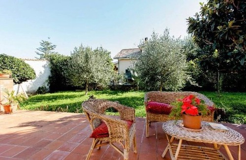 veranda equipped with table and chairs for outdoor dining, large manicured garden, gazebo with living room and deckchair, for complete relaxation, outdoor shower, parking spaces inside.