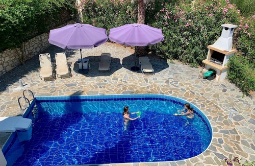 Yes, this Loutra villa has a swimming pool. Check the Facility Overview section for details about the pool and other available facilities.