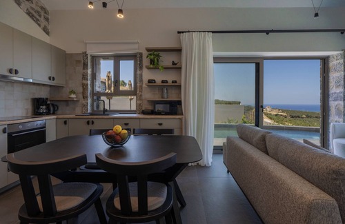 Villa Ioannis, a refined addition to the prestigious Valley View Villas complex, is a luxurious retreat nestled in a tranquil area near the village of Agia Triada, Rethymno. Surrounded by verdant greenery and offering stunning sea views, this villa blends modern elegance with peaceful comfort, making it an ideal haven for families, couples, or small groups seeking a memorable holiday.Spanning approximately 100 square meters, Villa Ioannis is thoughtfully designed to accommodate up to 4 guests, ensuring a cozy and indulgent stay. The villa features 2 well-appointed bedrooms, 2 en-suite bathrooms, 1 parking space in front, and 1 additional space at the entrance, with amenities including free Internet, a loft, and access to a playground.Interior and Amenities: • Bedrooms: The villa includes two bedrooms with double beds, each equipped with a TV, air conditioning, and private balconies or patios offering breathtaking valley views. • Living Area: The open-plan living space is designed for relaxation, featuring comfortable seating, a TV, and air conditioning. A fully equipped kitchen with modern appliances, including a dishwasher, mini bar, and refrigerator, along with utensils, supports self-catering. • Bathrooms: Two modern en-suite bathrooms with showers provide privacy and convenience for all guests.Outdoor Features: • Private Pool: The villa boasts a private swimming pool, approximately 30-40 square meters, perfect for cooling off and enjoying the scenic surroundings. • BBQ Amenity: An outdoor BBQ area is available for al fresco dining and entertaining. • Outdoor Furniture: Sunbeds, umbrellas, and a comfortable seating area are provided, complemented by a large playground for young visitors.Located 12 kilometers east of Rethymno city, Villa Ioannis offers a peaceful escape surrounded by nature, providing a relaxing holiday experience on the enchanting island of Crete.