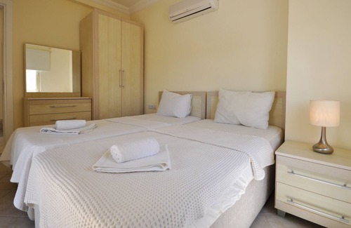 Villa is located in Flamingo Country Club site in Kırmızı Adabükü region and is a 3 bedroom villa with private pool. On the ground floor there is an open kitchen, a living room, a WC and a veranda opening to the pool, and on the upper floor there are 3 bedrooms and 2 bathrooms, one of which is an ensuite. If you want to watch the evening sun or sunbathe There is also a roof terrace. With the sofa in the living room, maximum: 7 people can be accommodated. Flamingo Country Club is a large site with many villas, flats, social common areas. *18 communal swimming pools, children's pool, indoor swimming pool, Sauna and Turkish Bath * Restaurant, Market, 6-hole Golf Course, Basketball, Tennis and Big Chess * Table Tennis and Billiards Table * Bar and Wi-FI * Hairdresser and Beauty Center exists. You can find everything you are looking for a pleasant holiday at Flamingo Country Club. You can also contact us for a holiday in the comfort of your home.