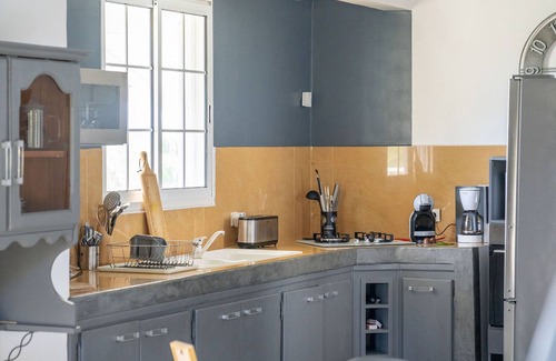 Top of a comfortable villa, comprising 3 individual air-conditioned bedrooms with double beds each. A mezzanine has another double bed, a capacity of 9 beds with the possibility of adding in one of the bedrooms, a baby bed. An equipped kitchen open to a modern living room. Two bathrooms: one with a bathtub, the other with a walk-in shower. A veranda overlooking the pool and the garden, equipped with a barbecue, a large terrace, deckchairs and a large table that can accommodate 10 people. We have WIFI as well as Canal Satellite. Our structure is closed and secured by an electric gate. The structure is in the countryside but 1500 meters from the beach of Anse à l'eau.