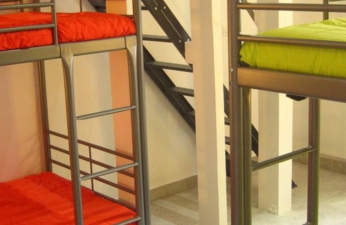 - bedroom 3: two bunk beds 90x200 and a bed 140x190 on the mezzanine, a toilet area with shower and sink