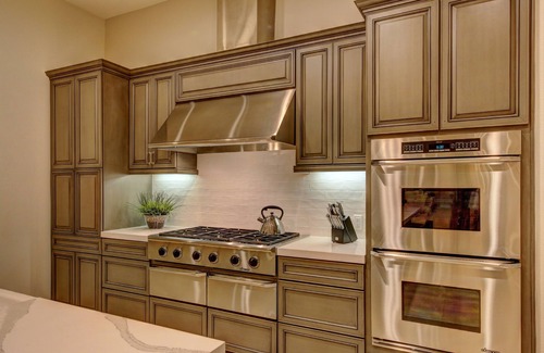 This luxurious desert lifestyle continues as you enter the fully-equipped and remodeled chef's kitchen. The stainless-steel appliances, double oven and oversized center island offers the perfect space for everyone to help create an amazing meal together, or to gather around socializing while sharing appetizers. There are ample seating options as well between the wrap-around breakfast bar, casual kitchen table and formal dining area with an elegant chandelier seats eight guests.