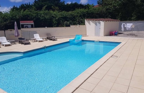 In a countryside environment, in a dominant position, Villa Les Mondoux has everything to please! inside, we appreciate its beautiful volumes, its very bright rooms with large openings, its living room opening onto the covered terrace with a beautiful view of the countryside and its equipment made available such as a computer, the Wii console with games that will delight the whole family, wifi !! Outside, we like the heated swimming pool and the pleasant garden to play ball or relax on the deckchairs! Access to the cottage through the covered shelter, then laundry room with freezer and table football, hall giving access to the dining room, the fully equipped kitchen, and the living room with sofas, flat screen TV, insert. Office with library, DVD and computer available. On this same level, a bedroom with 2 single beds, shower room + wc. Upstairs, 2 bedrooms, one with a 140 cm bed and bathroom + wc, and the other with a 160 cm bed, 1 90 cm bed and its shower room + wc. wifi, electric heating. Unfenced land. Heated swimming pool, salt 10m/5m depth 1.70m open from mid-April to mid-October (subject to weather conditions).