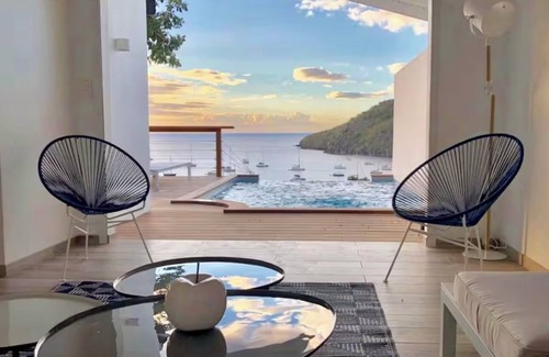 Villa 5* surplombant le magnifique village des Anses d'Arlet, la vue panoramique sur la mer des Caraibes est epoustouflante. A 150m de la plage, vous y trouverez confort et plenitude.