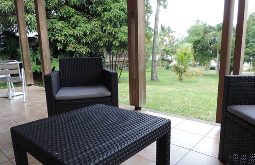 Luxury villas in a 3000 m² waterfront garden with trees. Kiosk overlooking the ocean (shared access). Vegetation (vacoas, mango, coconut, palm, avocado, jackfruit, grapefruit, ravenals ...).