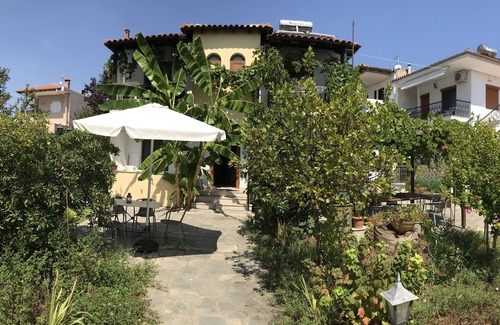 This is a house located in Afitos, Halkidiki, 200 meters from the center of the traditional village of Afitos and 700 meters from the deep blue and sandy beach. Divided into four independent studios, each with a separate entrance. Around the building there is a garden with various trees, plants and flowers that the visitor can spend pleasant hours of rest and relaxation. The studios have recently changed furniture.