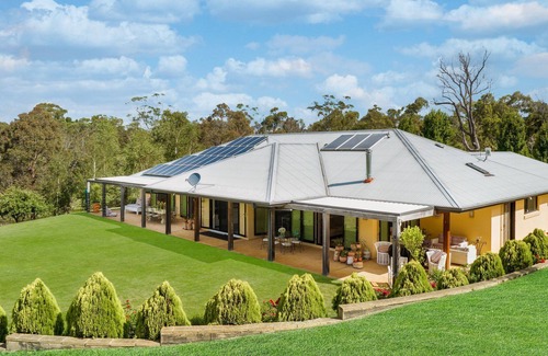 Villa Medusa is a luxurious, private home in the Southern Highlands located minutes from Berrima. Set on 5 acres of land, the north-facing house is modern and well equipped, and is generously proportioned and filled with light. Surrounded by manicured lawns and gardens, the outdoor areas are the perfect place for guests to enjoy the rural setting. Villa Medusa has a luxurious pool that overlooks the gardens and surrounding bushland, and a firepit where guests can enjoy stargazing at night. During colder months, guests can relax in front of the two fireplaces. Villa Medusa - an ideal stay in the Southern Highlands!