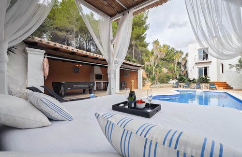 Best-rates for the Santa Eulalia del Rio villa starts from $4,083 per night with includes TV, Private Pool, Ocean View, Child Friendly, Laundry, View, Balcony/Terrace, Oceanfront, Sports/Activities, Barbecue/Outdoor Cooking, Internet, Security/Safety, Wellness Facilities, Fireplace/Heating, Parking, Pool, Bedding/Linens, Entertainment, Kitchen, Air Conditioner with all other facilities. Casai.ca matches every traveler with their perfect accommodation, whether you are traveling with a group, friends, family, or pets.