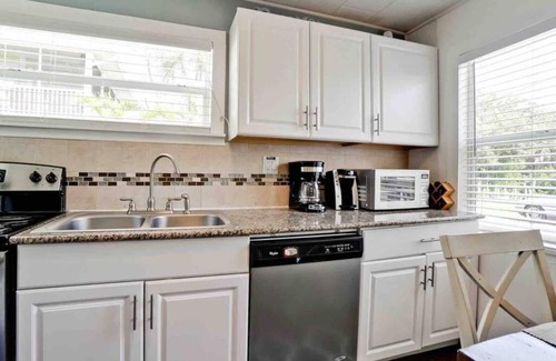 Great news! We've reopened after Milton! 3 Restaurants, stores, our beach access & Stumpy's Free Ride now open! In prime Manasota Key location, our talented interior designer created this beach bungalow gem with 2 bedrooms, TV's & kitchen with dining set. Walk only 1 minute to our delightfully uncrowded beach! 5 walk to Stump Pass. Swim Spa with waterfall & massage jets in common area. free Kayaks. quiet area. Login to your favorite streaming service with Smart TVs