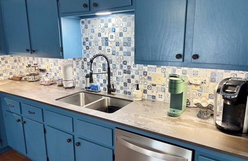 Culinary & Entertaining Spaces – Newly renovated kitchen fully equipped with a Keurig, traditional coffee pot, bakeware, pots and pans, and a blender for margaritas. Dining table seats six, perfect for shared meals or game-day snacks.