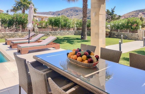 A luxurious villa that sleeps seven with pool, hot tub and stunning views, nestled in the hills of Kissamos, Crete.