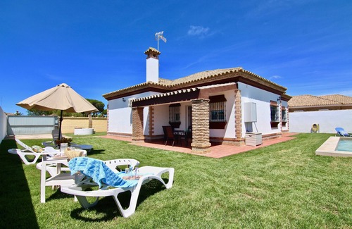 The villa is 10 minutes away from the beach and public transport links are located within walking distance. Nearby recommendations include Barrosa Beach, Novo Sancti Petri and the Concert Music Festival.