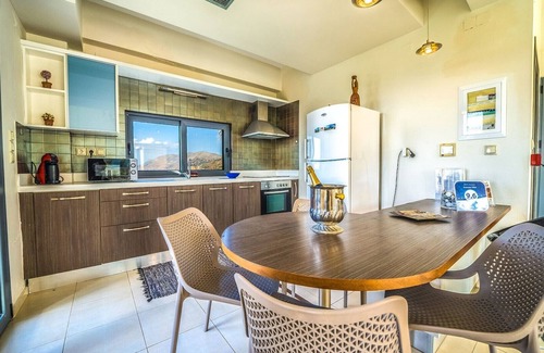 The spacious interior, boasting a modern design and elegant decoration, offers all the facilities for a comfortable and relaxing stay! Sited on the front side of the complex, the villa offers magnificent views of the sea and the surrounding area. The private pool, the grass-covered garden with Mediterranean trees, the imposing mountains of Kissamos and the unparalleled beauty of the amazing sunsets will fill your heart with the ultimate euphoria!