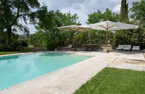 Villa Rapale is located in the municipality of Bucine in Valdambra, surrounded by a large fenced garden with lawn, private parking for 8 cars, and an outdoor dining area with parasols, ideal for alfresco meals with friends.